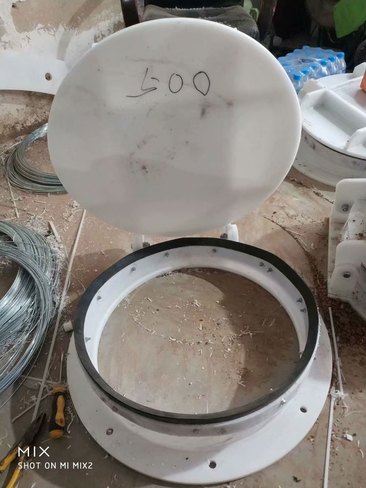 复合材料拍门,由专门研制的负荷材料制成,在研制这种材料之初,就重点考虑的其质量比率,耐腐蚀性能,强度和价格因素,由此生出的拍门,相比传统铸铁拍门和型钢拍门,其耐腐蚀性更好,质量比率低,小开启压力只需0.0003MPa,远远优于传统拍门,与不锈钢拍门相比,其低廉的造价更是具有决定性的优势,复合材料拍门是替代传统
